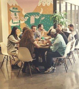 Our (ah-mazing) first client, social media app Yik Yak, enjoys lunch as a team!